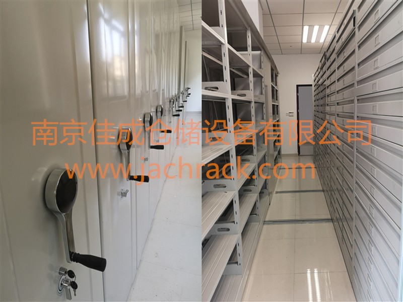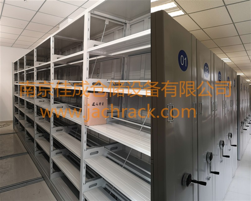 v活动式密集架是在传统档案架的基础上采用轨道把多个架列密集到一起,使档案在单位面积上的存贮量提高,节省面积可达50%以上,并有防火、防盗、防尘等优点。但这种档案架造价高,增加了建筑负荷,增加了库房建筑的投资,调用档案不如一般的档案架方便,如遇特殊情况,抢救档案比较困难。